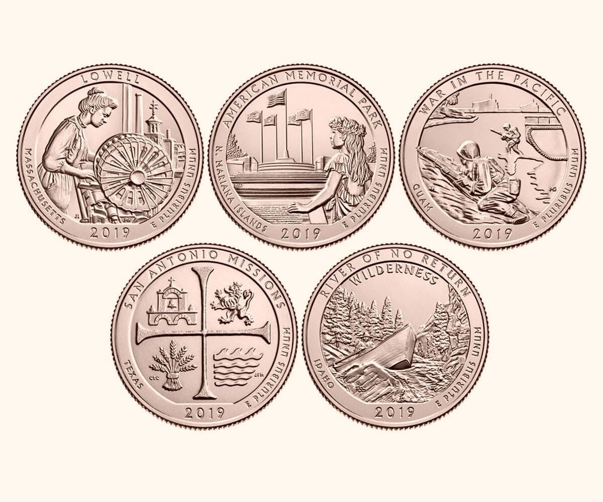 USA 25 c Parki narodowe x5 2019 platerowane złotem