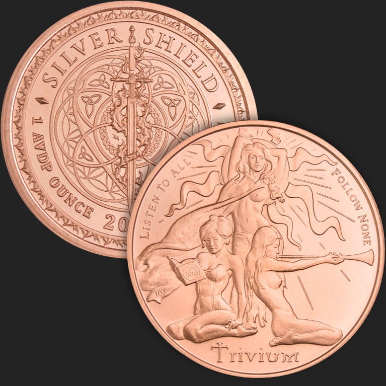 Na awersie widnieje artystyczna ilustracja trzech kobiecych postaci reprezentujących Trivium – klasyczne podstawy edukacji:
