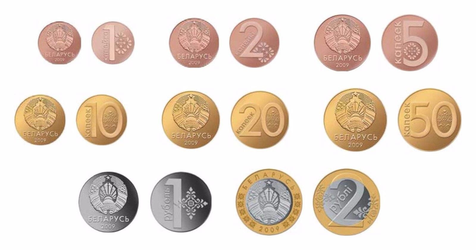 Białoruś: MONETY OBIEGOWE Kompletny zestaw 8 monet 2009 (2016 rok).